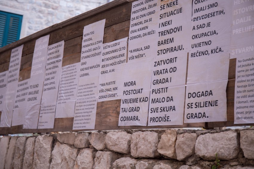 Autorica je komentirala proces rada: 'Na samom početku, zanimalo me možemo li sa stanovnicima grada razgovarati o Dubrovniku, a da se ne osvrnemo na turizam ili zapadnemo u nostalgiju. „Nije to nostalgija, to su stvari potrebne za život“, upozorila me jedna stanovnica. U gradu podređenom sezoni, ne postoje trenuci ili razgovori kroz koje se turizam neće provući. Turizam, prisutan i u onim rijetkim trenucima tišine – u četiri ujutro na Stradunu – dok je sve drugo tiho, dopire iz brujanja bankomata i frižidera iza zaključanih lokala. Istražujem potencijal onoga što je od grada ostalo, u iščekivanju kraja sezone, u ideji o odmoru grada od gužve, konzumacije i scenografije.'